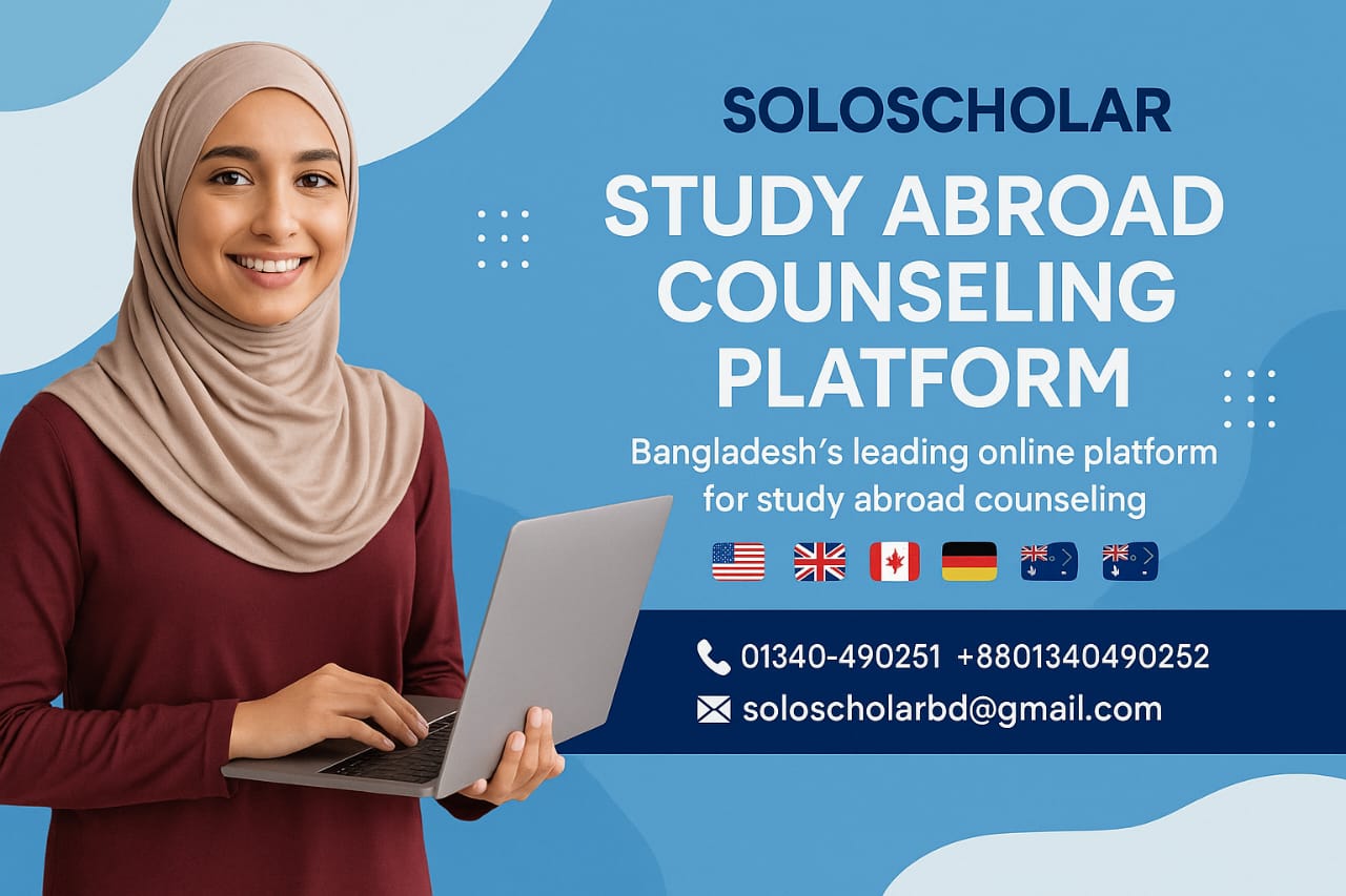 Soloscholar is an online study abroad counseling platform based in Bangladesh. We connect students with expert counselors and real international students to help them plan, prepare, and apply for global education opportunities. We’re not a typical agency — we offer personalized, honest guidance every step of the way and provide support for every particular or different part of your study abroad journey.